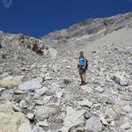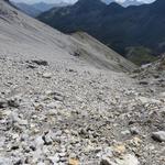 über feines Geröll verlieren wir weiter rasch an Höhe