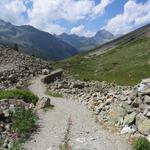 kurze Zeit später stossen wir wieder auf den Wanderweg, der vom Albulapass her kommend, nach Crap Alp führt
