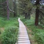nach einem kurzen Stück über eine Kiesstrasse, tauchen wir im Wald hinein