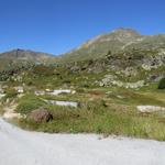 am Ende der geteerten Strasse nehmen wir die Abkürzung 2017 m.ü.M. und umgehen so eine Rechtskurve der Alpstrasse
