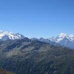 was für eine traumhafte Aussicht! Links die Fletschhorngruppe. Rechts die Mischabelgruppe