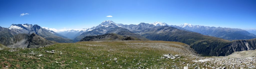 sehr schönes Breitbildfoto mit Blick auf die andere Seite, zu den Eisriesen der Walliser Alpen