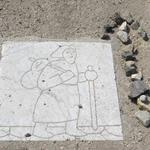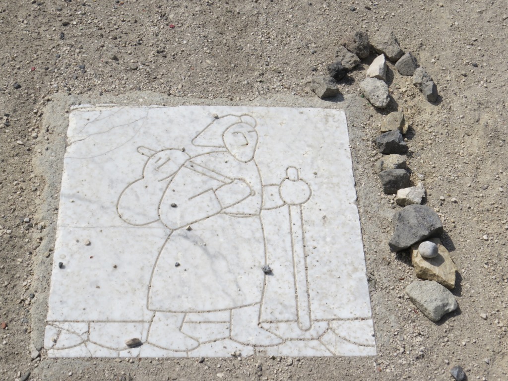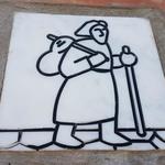 kurz nach Lambrinia erkennen wir zum ersten mal Pilgerzeichen am Boden Datum 07.10.2017