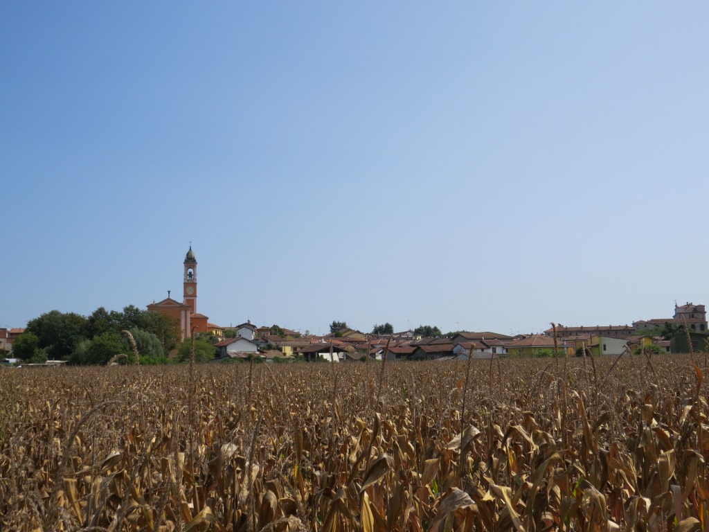 über ausgetrocknete Maisfelder blicken wir Richtung Orio Litta Datum 07.10.2017