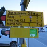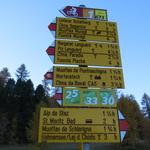 Wegweiser beim Parkplatz von Punt Ota, Eingangs Val Roseg Datum 25.03.2018