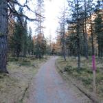 der breite Wanderweg führt uns bequem, leicht ansteigend durch den Arven-Lärchen Mischwald unterhalb des Muottas Puntraschigna Datum 25.03.2018