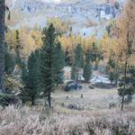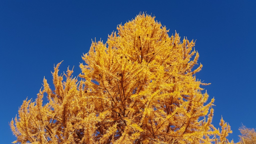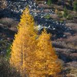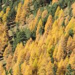 ...erreichen wir die ersten Orange-Gold leuchtende Lärchenwälder Datum 03.04.2018