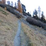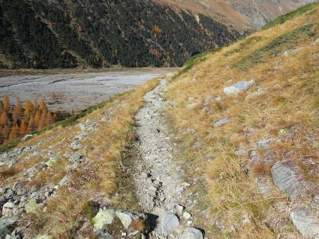 auf der anderen Talseite, biegen wir in den Wanderweg, der von der Fuorclas Surlej hinunterführt Datum 03.04.2018