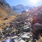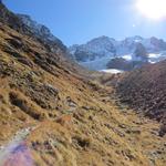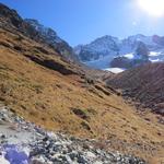 bei Punkt 2396 m.ü.M. verlassen wir wieder die Seitenmoräne, und blicken nochmals zurück Datum 28.03.2018