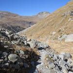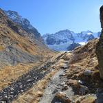 der Bergweg führt uns weiter in der Talmulde, zwischen den steilen Bergflanken des Piz Tschierva... Datum 26.03.2018