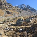 die Seitenmoränen verdeutlichen die einstige Ausmasse des Tschierva-Gletscher Datum 26.03.2018