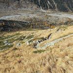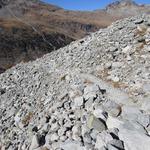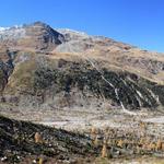 von hier oben sind die gewaltigen Ausmasse der Seitenmoräne des Tschierva Gletscher gut ersichtlich Datum 28.03.2018