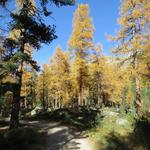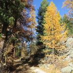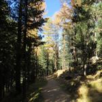 geradeaus weiter, durchwandern wir Orange-Gold leuchtende Lärchenwälder Datum 26.03.2018