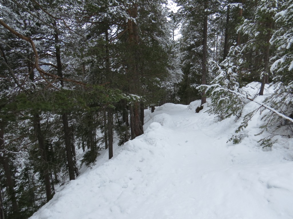 wir verlassen die Strasse und ziehen eine Spur durch den Tiefschnee