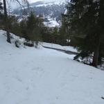 hier überqueren wir die Strasse und laufen -die Strassenschlaufen abkürzend- weiter abwärts