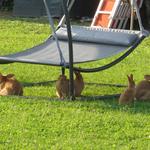 in der Parkanlage des Hotels springen die hoteleigenen Hasen umher Datum 03.06.2018