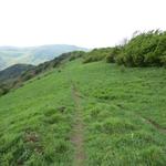 über den breiten grasigen Grat verlieren wir nun stetig an Höhe Datum 03.06.2018