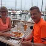bei der alten Fähre im Hafen von Lochau, entscheiden wir uns spontan eine Mittagspause einzulegen