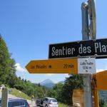 Wegweiser bei der Bergstation Les Pléiades 1348 m.ü.M.