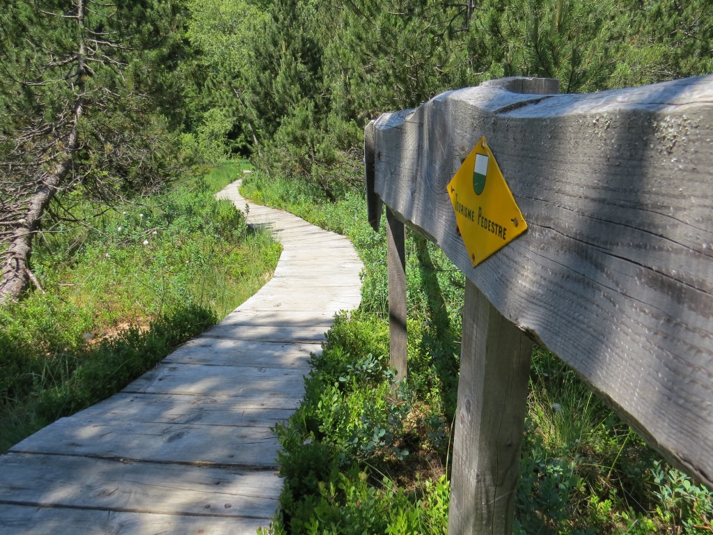die Holzstege im Naturschutzgebiet Les Tenasses verlaufen im Zickzack...