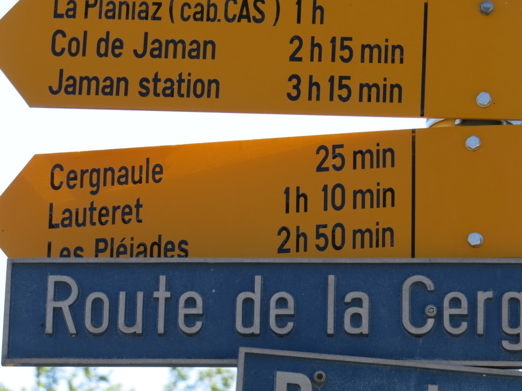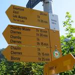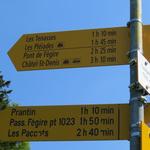 Wegweiser bei der Bergstation Les Pléiades 1348 m.ü.M.