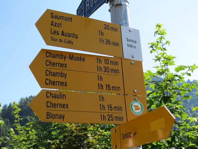 Wegweiser bei Sonloup 1149 m.ü.M.