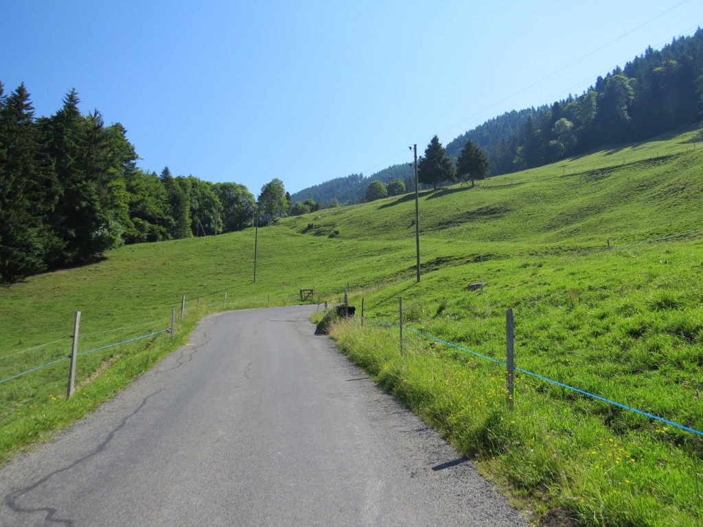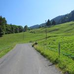 ...und laufen nun wieder auf einer Strasse entlang, Richtung Norden nach Lally 1240 m.ü.M.
