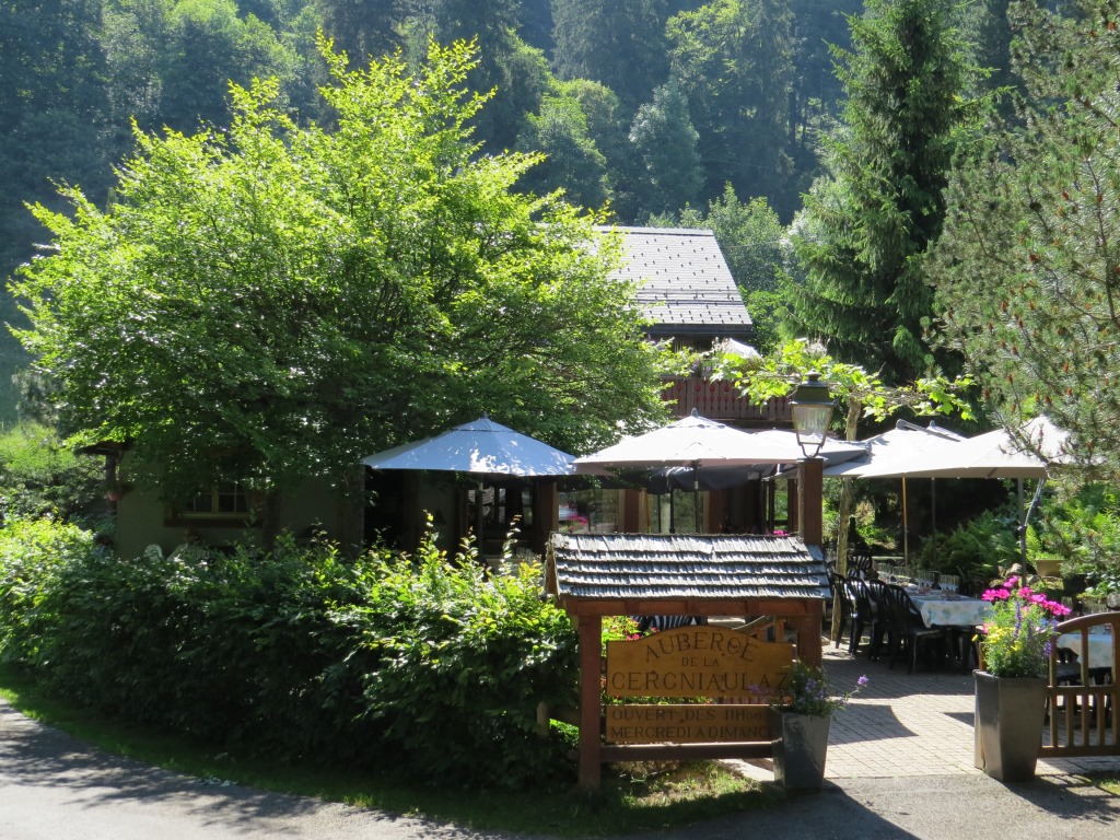 direkt bei der Kreuzung wo der Wanderweg die Strasse verlässt, steht die sehr schöne Auberge de la Cergniaulaz