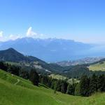 wir erblicken das Glitzern des Genfersees und auf der andern Seite der Grammont, den wir auch bestiegen haben