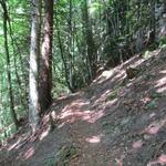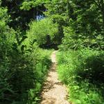 der Waldweg führt uns durch dichten Wald...