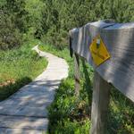 die Holzstege im Naturschutzgebiet Les Tenasses verlaufen im Zickzack...