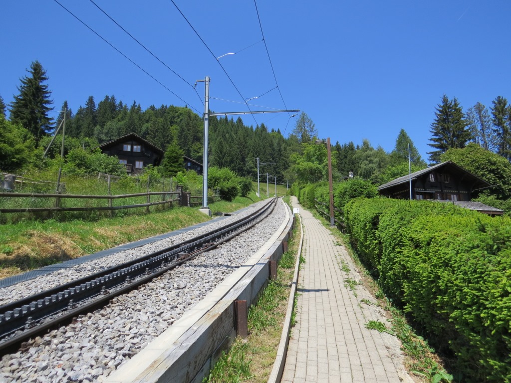direkt bei der Haltestelle der Zahnradbahn laufen wir nun alles neben den Schienen...
