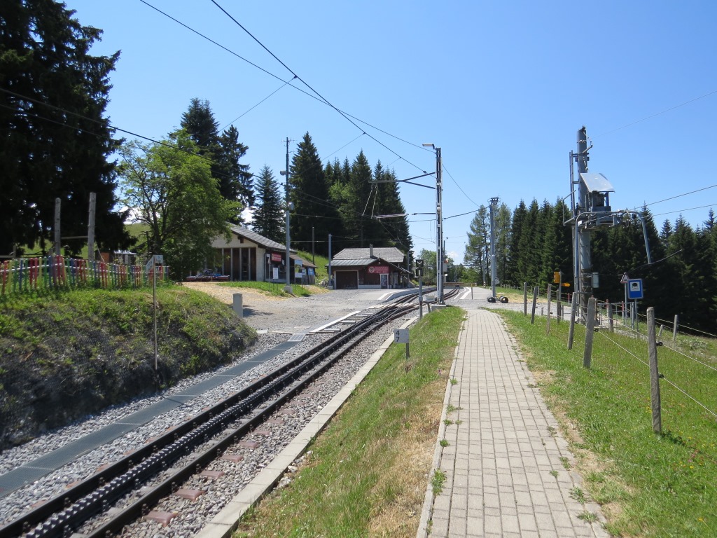 ...steil aufwärts bis zur Bergstation Les Pléjades der MVR Montreux–Vevey–Riviera Bahn
