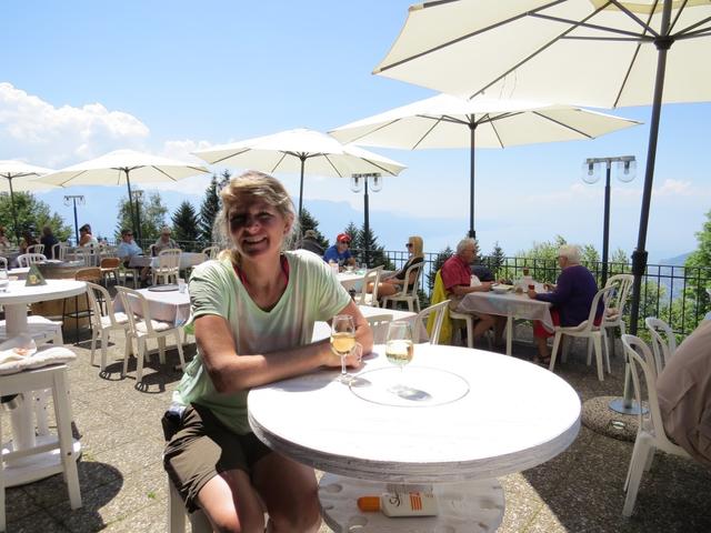 auf der grossen Sonnenterrasse des Bergrestaurant geniessen wir die fantastische Aussicht auf den Genfersee...