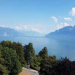 vom Balkon des Hotelzimmer genossen wir eine traumhafte Aussicht auf den Genfersee und die Riviera zwischen Vevey und Montreux