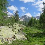 wir verlassen die im Schatten der letzten Lärchen, und auf einer Moräne gelegene Capanna Piansecco Datum 21.01.2019