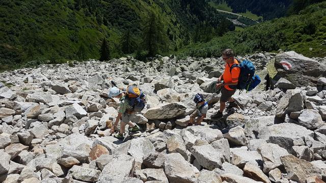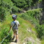 dieser Geröllhang führt fast senkrecht in die Tiefe. Die Kinder sind zur Sicherheit am kurzem Seil Datum 22.01.2019