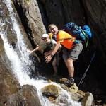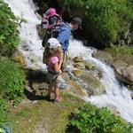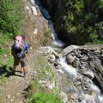 da die Steinbrücke zerstört ist, muss mit einem Sprung der Bergbach überquert werden Datum 22.01.2019