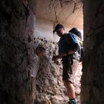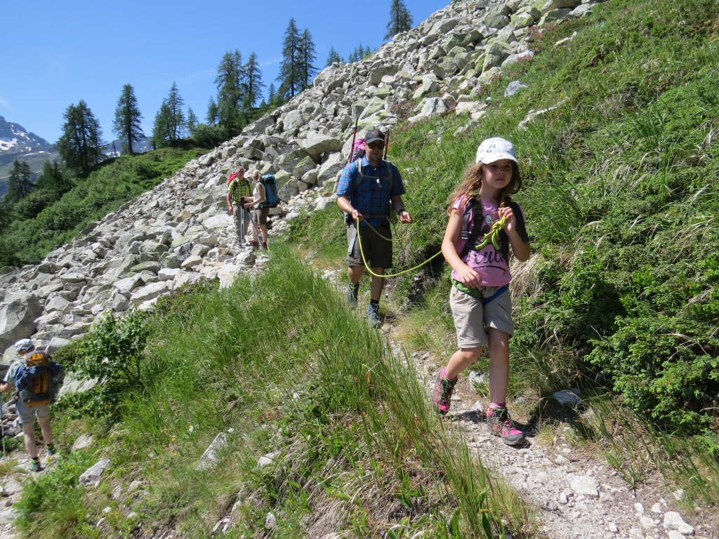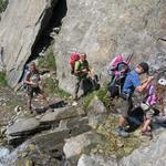 dieser Geröllhang führt fast senkrecht in die Tiefe. Die Kinder sind zur Sicherheit am kurzem Seil Datum 22.01.2019