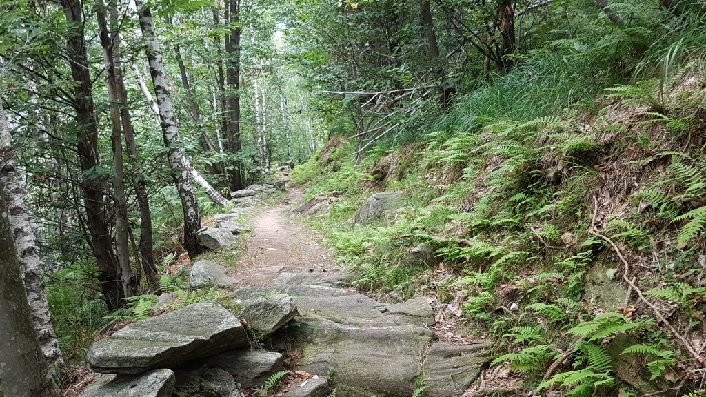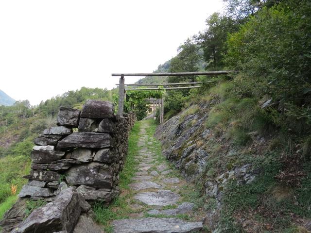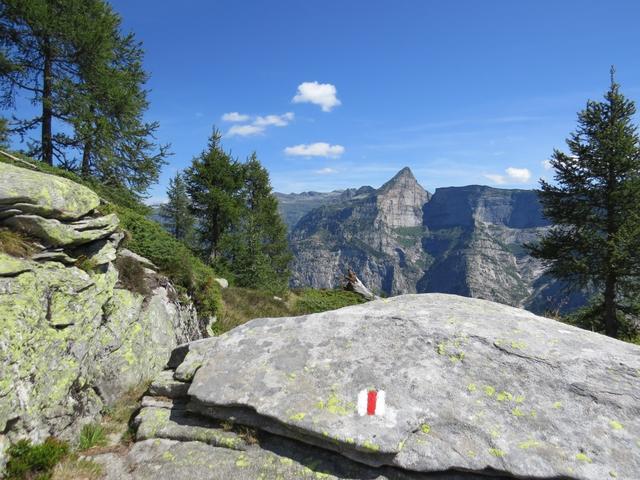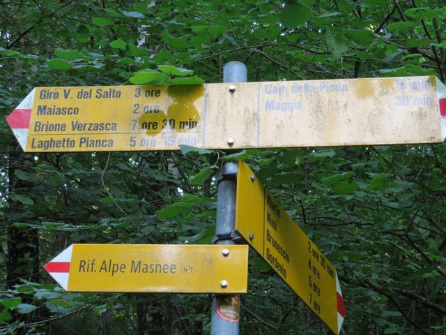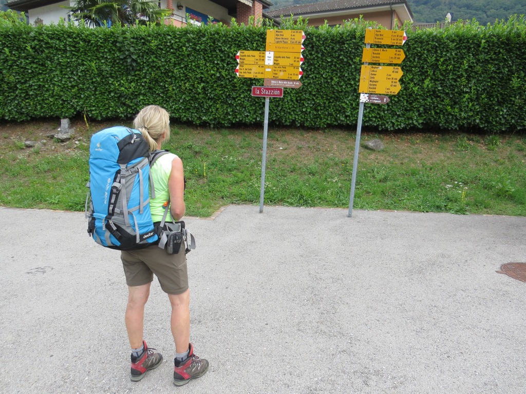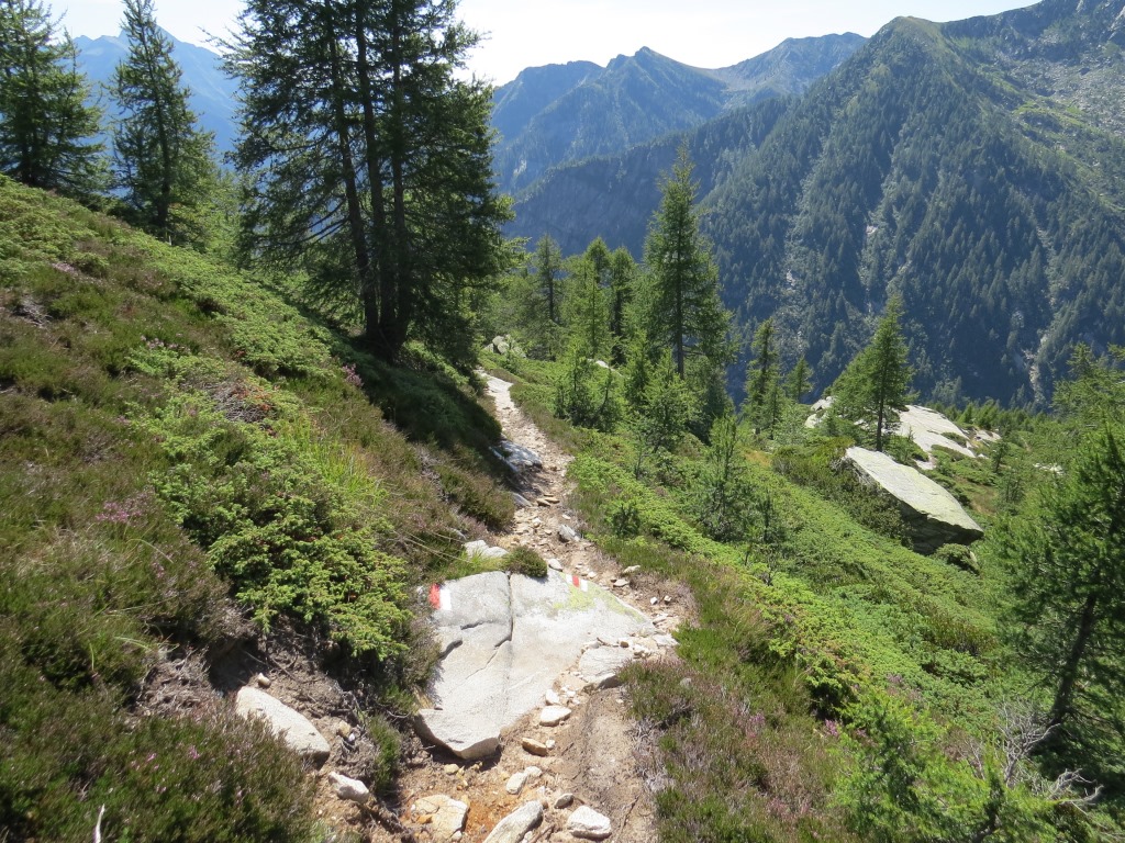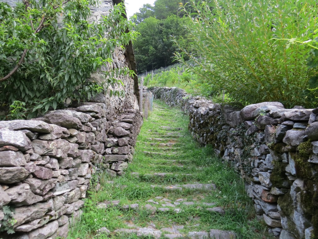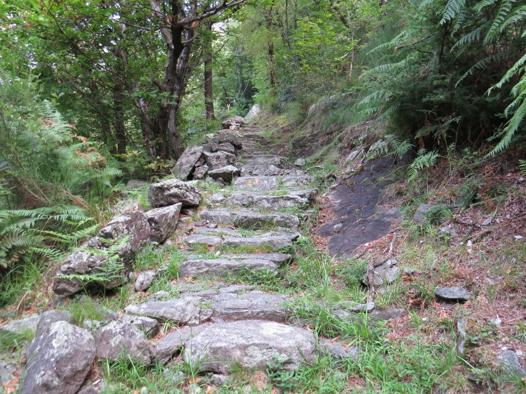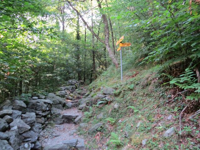 schon nach ein paar Meter erreichen wir eine Weggabelung. Hier führt die Via Alta Vallemaggia durch