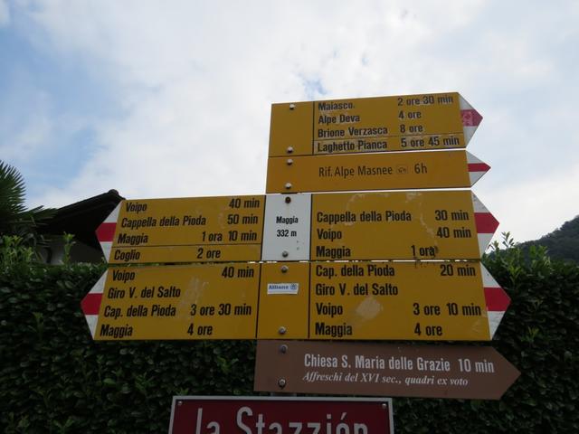 bei der Bushaltestelle von Maggia 332 m.ü.M. beginnt unsere heutige Wanderung