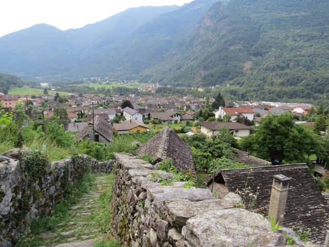Blick hinunter nach Maggia mit der Chiesa San Maurizio die einen Besuch wert ist