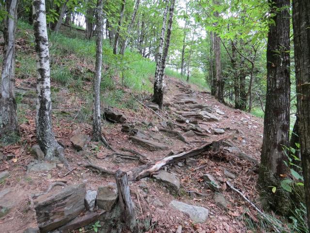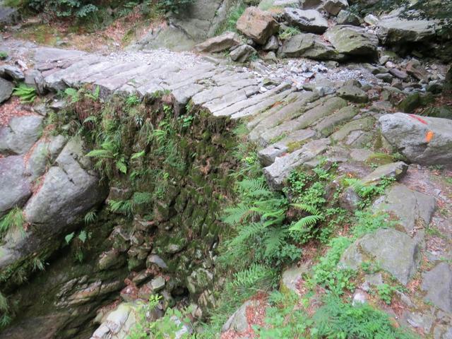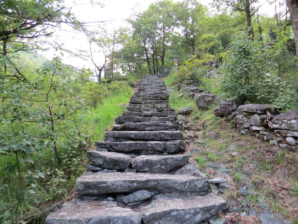 die uralten Steintreppen aus den grossen Gneisplatten, sind hier durch die Natur verschoben worden
