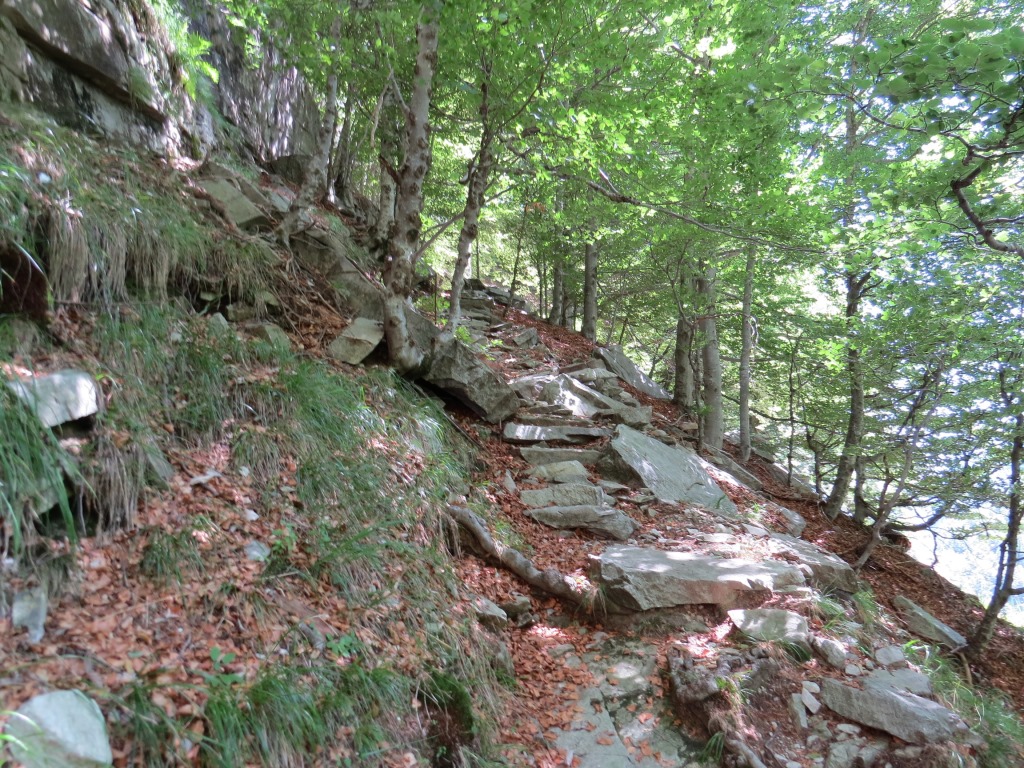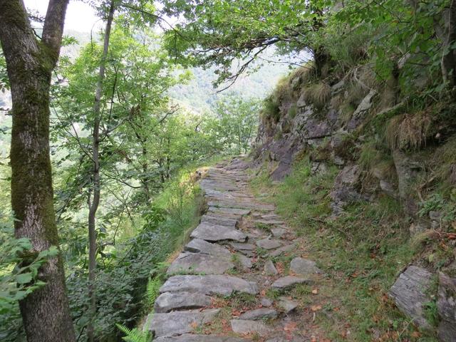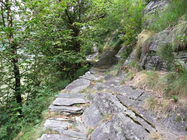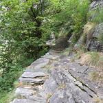 der direkt an der steilen Felswand angebrachte Steinplattenweg, biegt nun rechts in das Valle di Ringio hinein