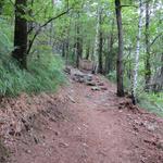 über einen abrupten Richtungswechsel, biegen wir nach links in den Wald hinein