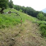 kurz vor dem Motarüch biegt der Pfad links ab und vereint sich bei der Weggabelung 1976 m.ü.M...