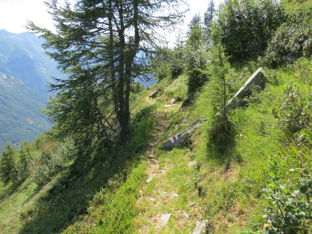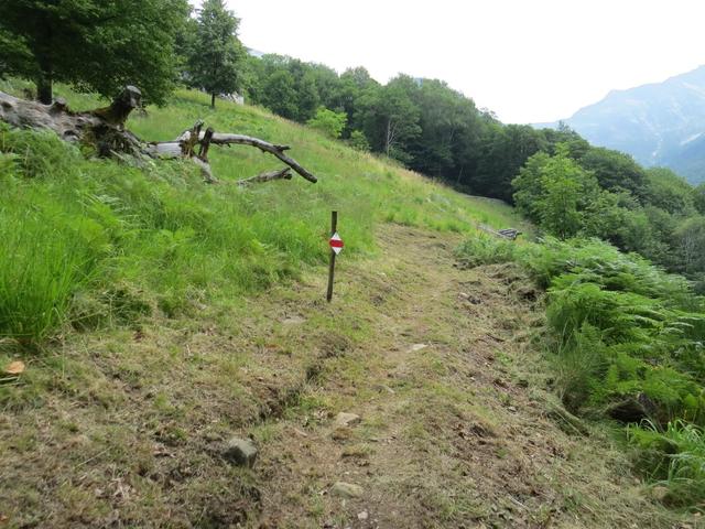 rechts abbiegend verlässt uns die nun weiss-blau-weiss markierte Via Alta Vallemaggia