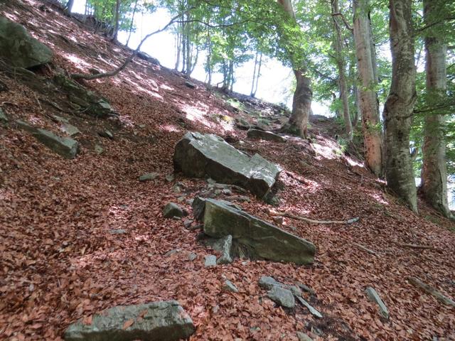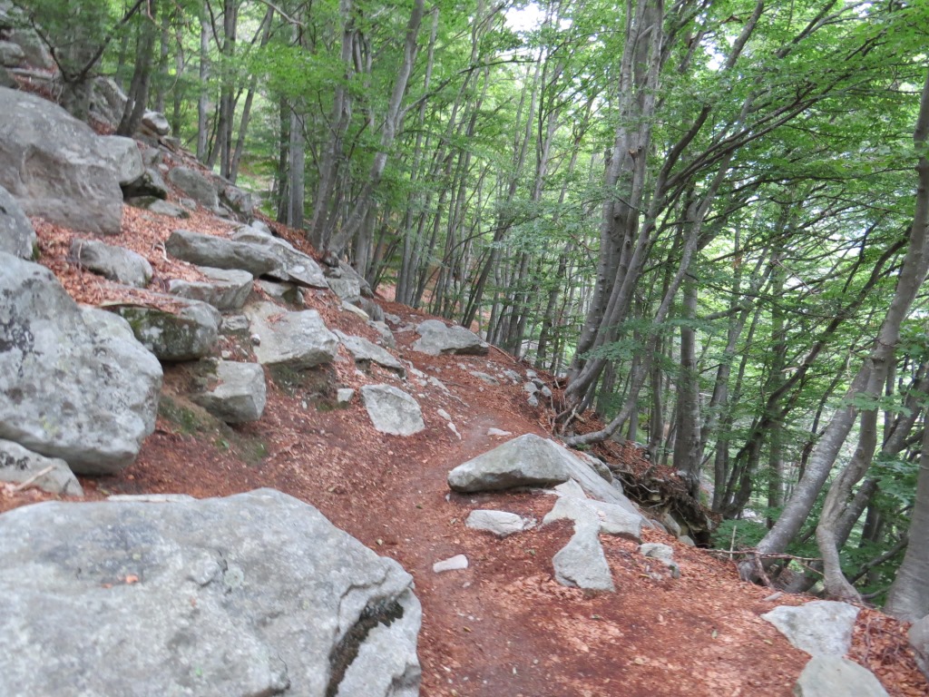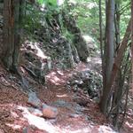 durch einen dichten Wald 1199 m.ü.M. geht es nun 500hm steil hinunter...