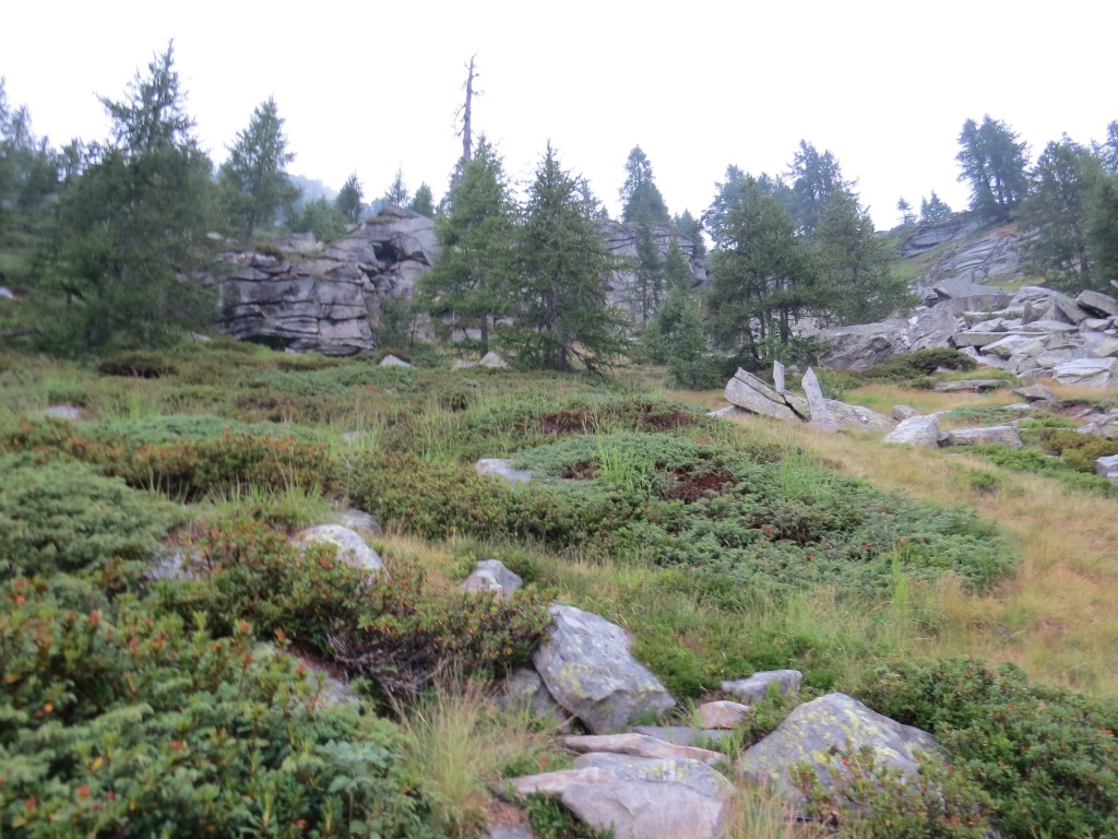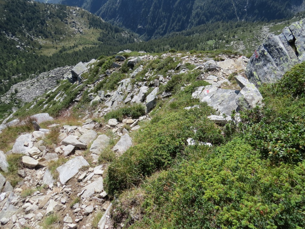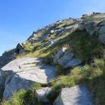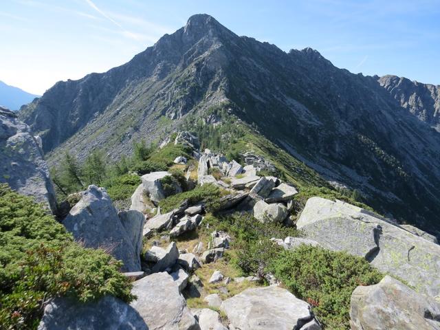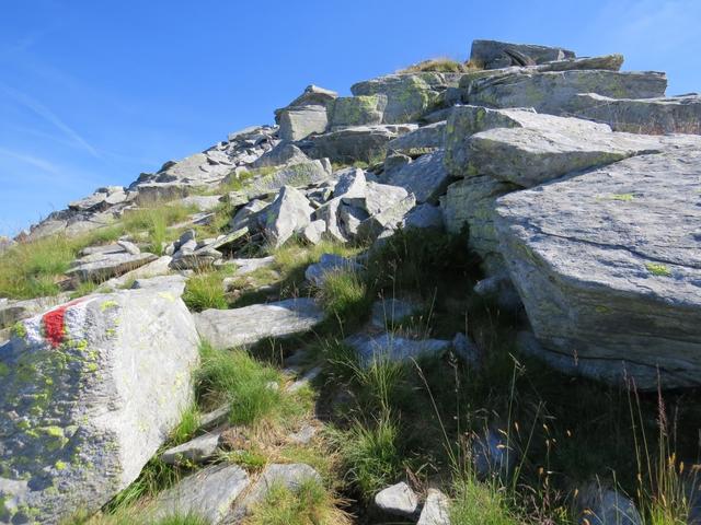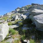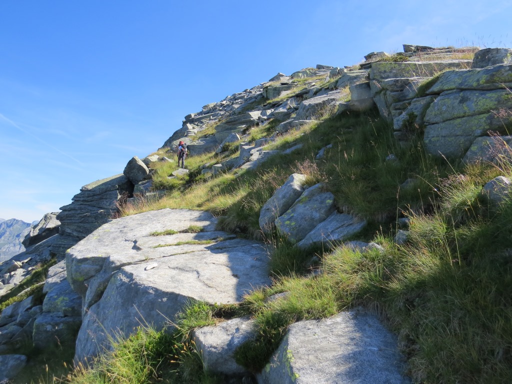 wir erreichen den breiten mit Granitblöcken übersäte Verbindungsgrat, der uns zum Passo Deva führen wird