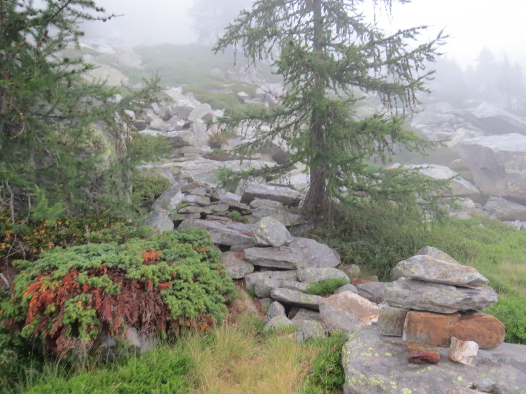Nebel zieht auf. Mit GPS Gerät und die Richtung wissend, wo der Rifugio sich befindet, ist es für uns kein Problem